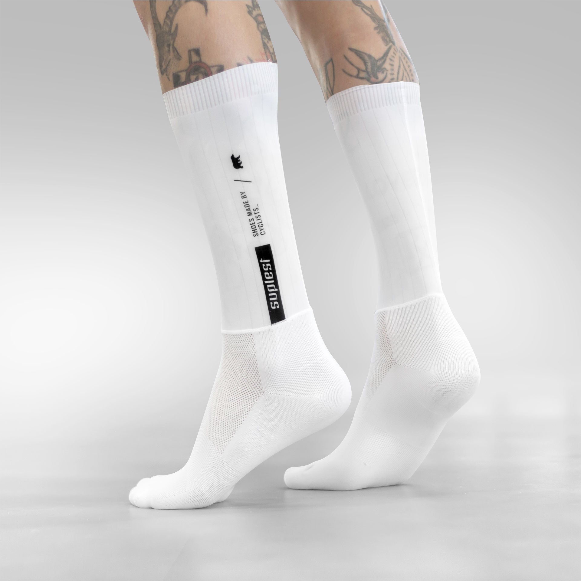 Unsere suplest AERO Socke ist die schnellste Socke, die wir je produziert haben. Sie besteht aus einer Kombination von Nylon und Spandex. Die Performance-orientierte Passform und der Schaft sorgen für maximale Aerodynamik. Ein nahtloser Zehenbereich und rutschfester Silikonabschluss am Bündchen tragen zu einem hohen Tragekomfort bei. Für mehr Stabilität sorgt ein Kompressionsband am Rist.